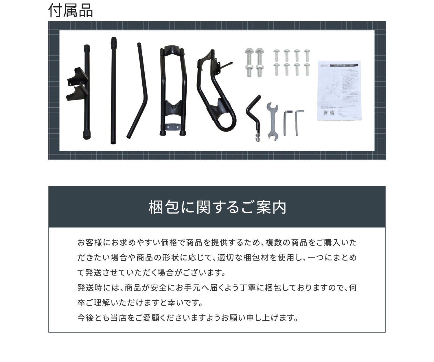 ● 平坦で水平な場所に設置してください。傾斜地では自転車が転倒する恐れがございます。 特に縦置きで使用される際は、バランスに十分ご注意いただき、転倒事故の防止に努めてください。 ● 本品は自転車を支えるために設計されており、自転車設置後にまたがったり、スタンドの上に乗ったりしないでください。 ● 本品はタイヤの外周を3点で支える構造となっており、これら3点が同時にタイヤに接触していないと不安定になります。ご使用前に必ずタイヤ受け(特に前側のもの)を、使用するタイヤサイズに合わせて正しく調節してください。 また、タイヤが床に接触した状態では不安定になり、転倒の原因となりますのでご注意ください。 ● 自転車を縦置きにする際は、必ず後輪をタイヤ受けにしっかりと収めてご使用ください。前輪を下にした状態での使用はお控えください。 ● 自転車を横置きで保持する場合、安定性を高めるためできるだけ後輪をタイヤ受けに収めることを推奨しております。 やむを得ず前輪で支える場合は、ハンドルをひねらず、車体と前輪をまっすぐな状態でご使用ください。 ● ステップバーにタイヤ受けを装着しづらい場合は、ステップバーを反転させて前後の向きを入れ替えてみてください。 ステップバーは前後対称の形状ですので、どちらの向きで使用しても問題ありません。 また、タイヤ受けを固定するボルトは、最初に4本すべてを軽く仮締めしてから、本締めに移行してください。 1本だけ先に強く締めてしまうと、他のボルトが挿入しにくくなることがございます。
