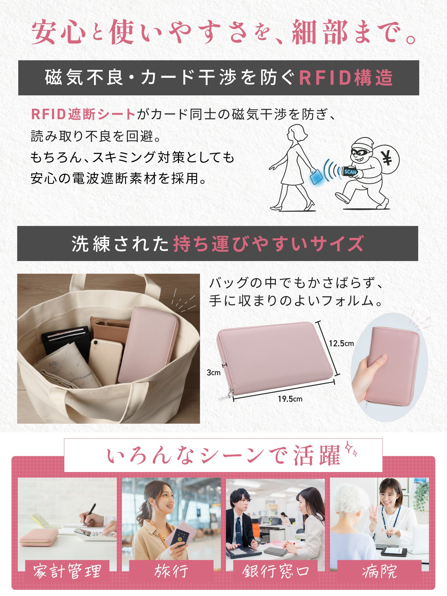 【 4色展開 】 ブラック・ライトグレー・ロータスピンク・ベビーピンク |